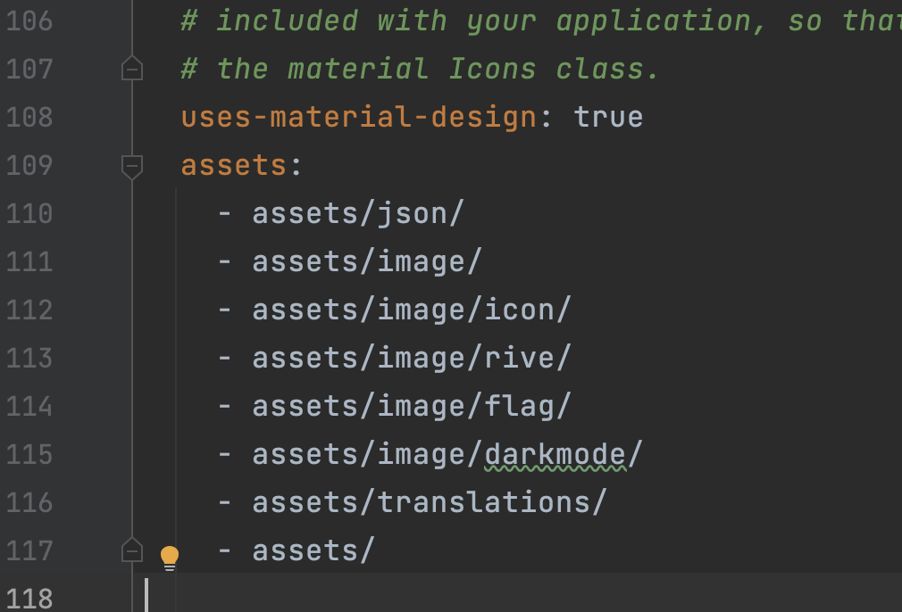 pubspec.yaml의 asset에 가서 이미지 폴더를 추가한다.