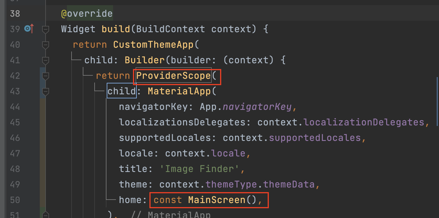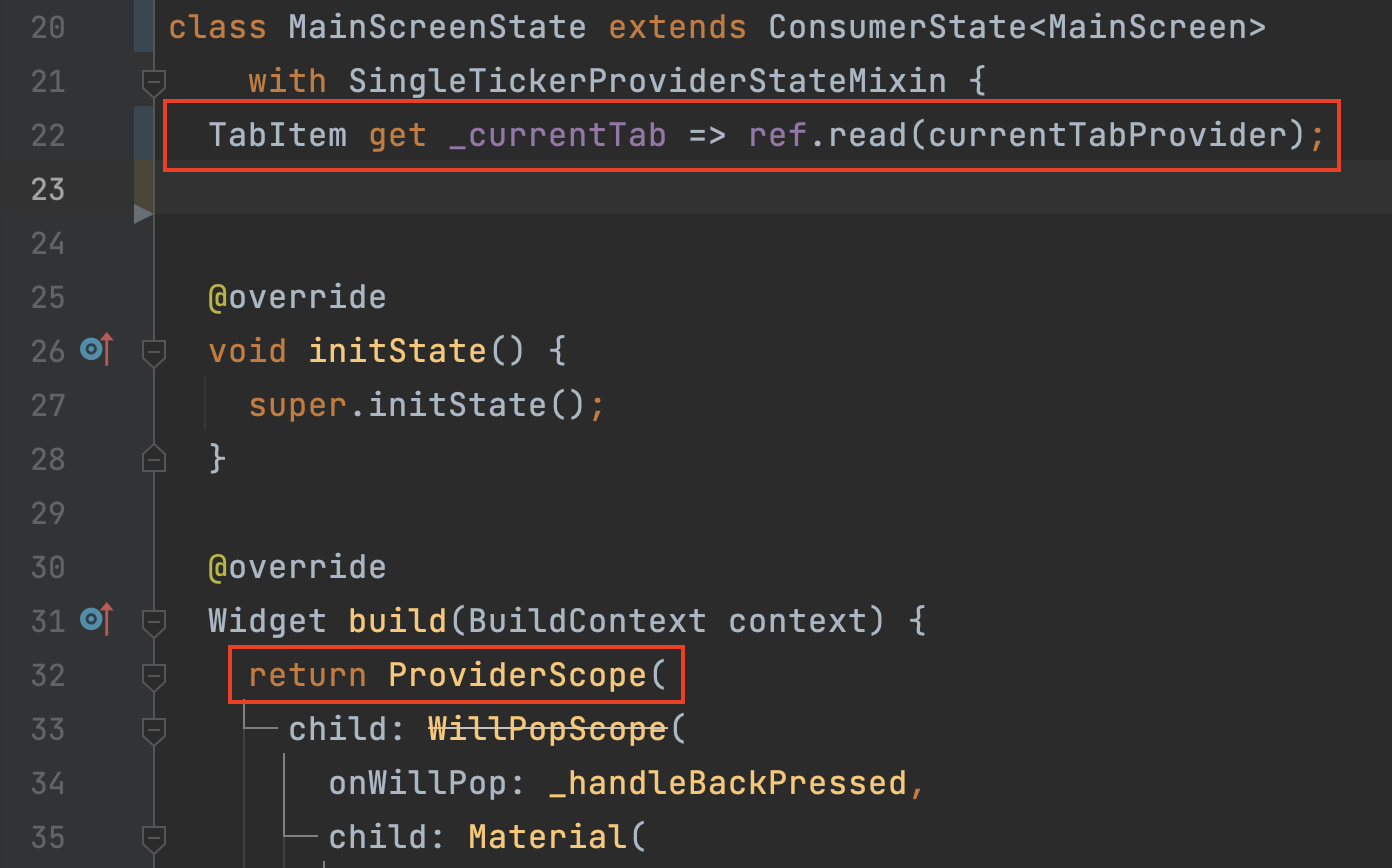 이유는 이렇다. ref.read가 먼저 선언되니 ProviderScope를 찾지 못하고 에러를 반환하는 것이다. 그러면 이 MainScreen보다 더 위에 있는 곳에서 ProviderScope를 선언해야 하는 것이다.